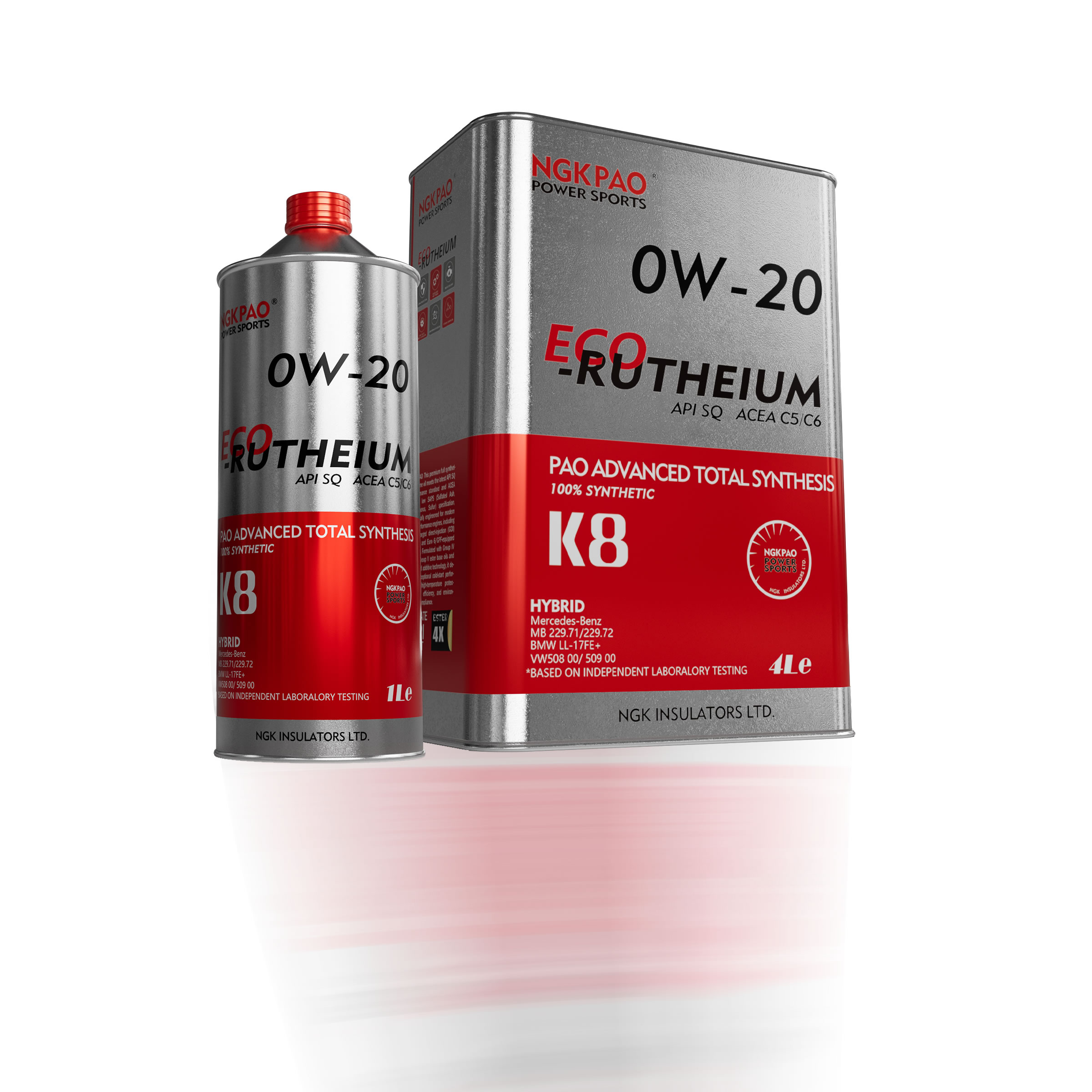 NGKPAO 优质全合成发动机油,符合最新 API SQ 性能标准及 ACEA C5/C6 低灰分(硫酸盐灰分、磷、硫)规范。
